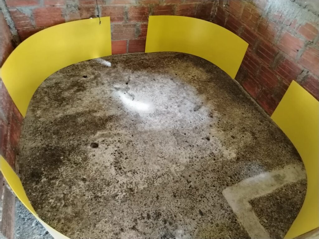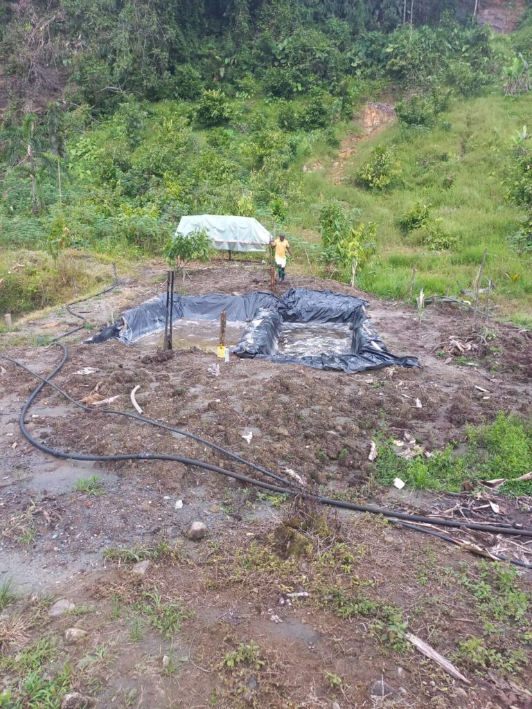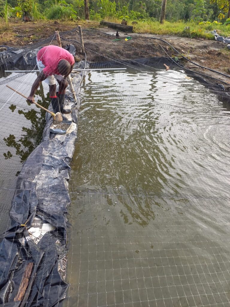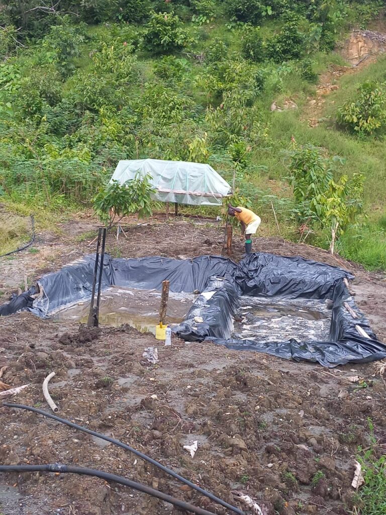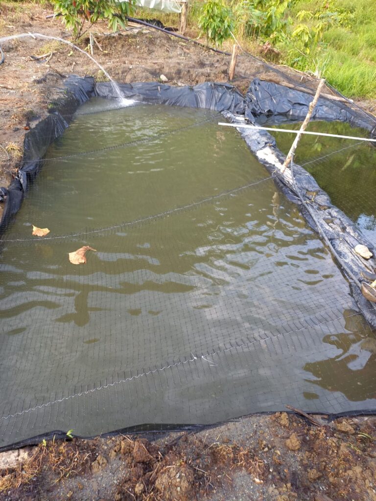 Apoyamos la realización de dos pozos para utilizarlos como semilleros de alevines, presupuestando que permanezcan un tiempo de máximo de 2 meses de estadía en los mismos. Tiene las siguientes dimensiones 7 de ancho por 8 de largo, para un total de 56 mtr2.
