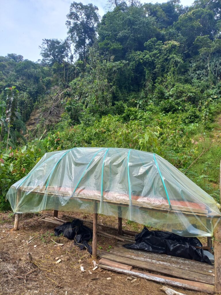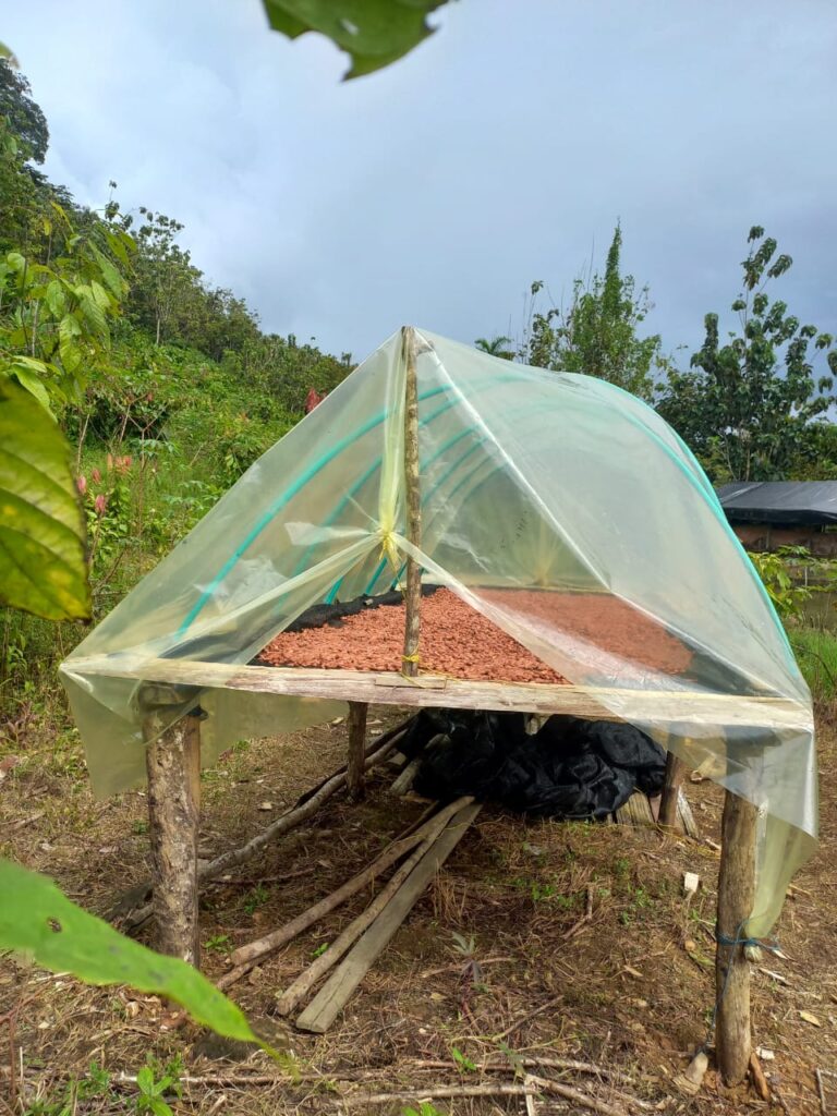Contribuimos con la fabricación de un secadero artesanal de cacao, que contribuye a la optimización en el tiempo de secado del grano; sumando un paso más en la mejora continua de todo el proceso. Sus dimensiones son: 2 ancho x 5 de largo para un total de 10 mtrs2.