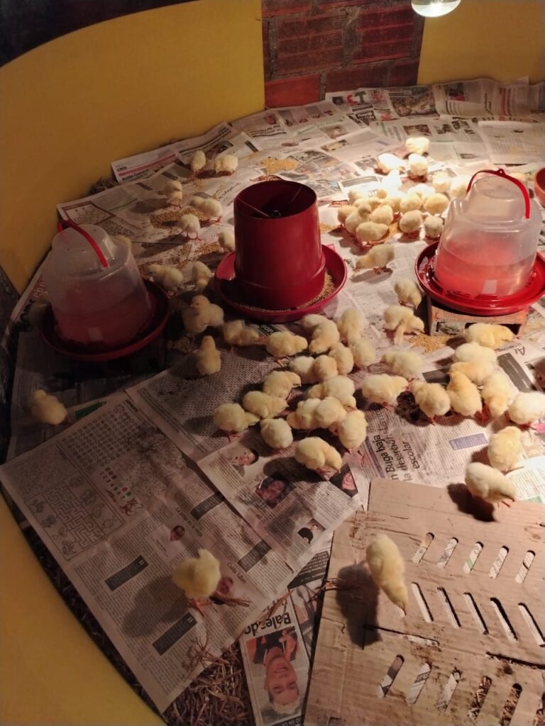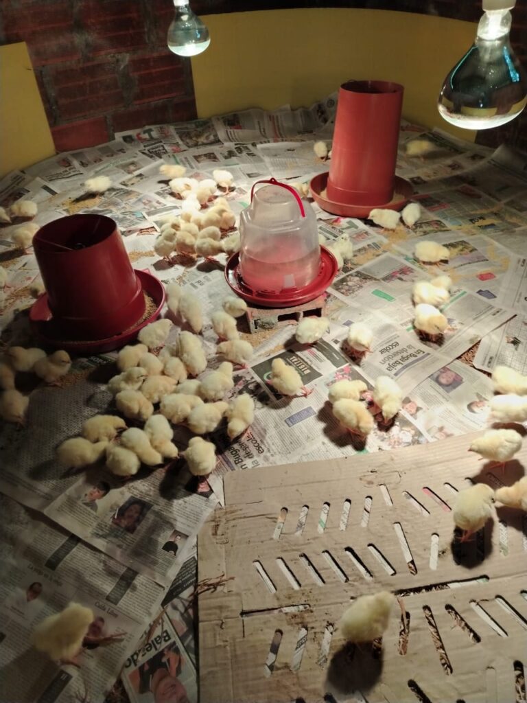 Trabajamos en la logística, elementos necesarios y adecuación del sector 1 para cría de 100 pollos de engorde, en el cual estarán por 10 días.